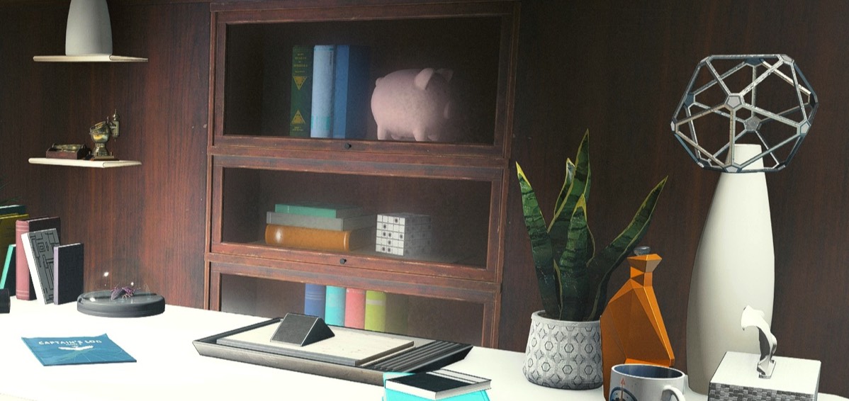 Books, folders, and misc item all placed on the wall shelves using the Build Menu